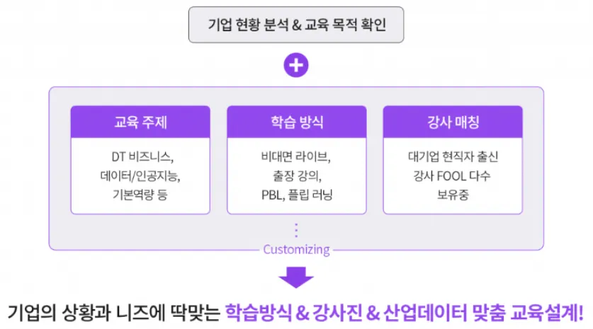 이런 고민을 하고 있다면, DT 기업 출강 교육 서비스를 선택하세요!