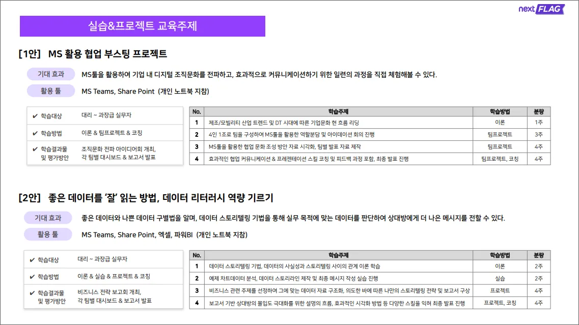 넥스트플래그는 산업 특화 비즈니스/기술 혁신에 필수적인 DT 전문 교육 브랜드로